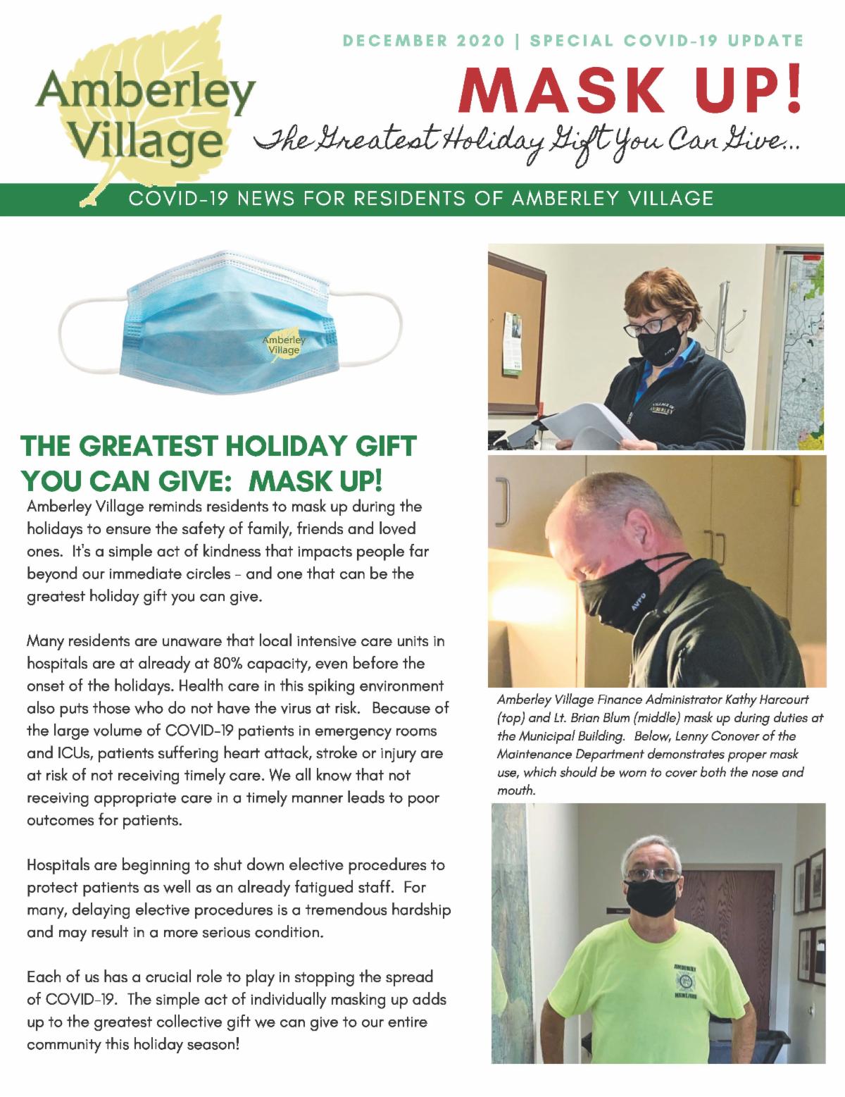 Amberley Village launched its Mask Up! campaign this past month, reminding all residents that the winter months increase potential for the spread of the Coronavirus.
