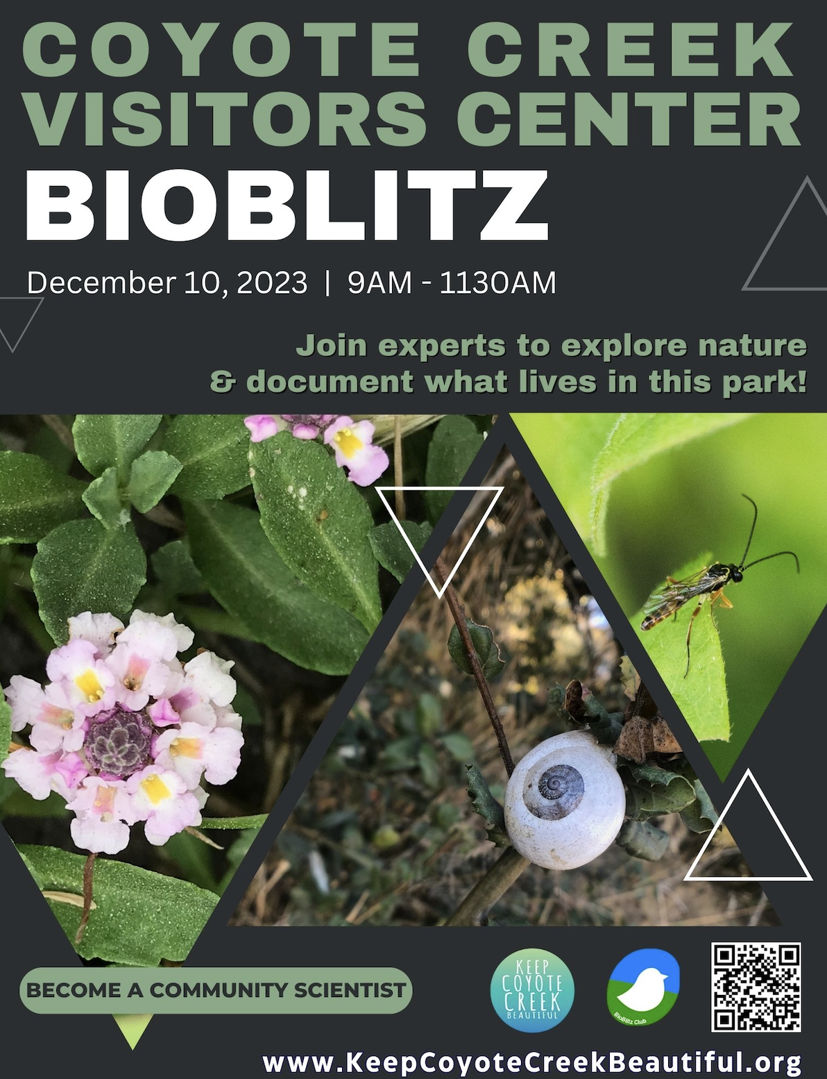 Along our creeks and in our parks live a huge variety of wildlife, from water bugs to birds, snakes to elk. We look for all of them at a BioBlitz. Essentially, we play PokeMan, but we seek out nature. iNaturalist, a mobile phone app, is the tool that we use to record our observations and share them with scientists. Also, on the iNaturalist website, you can search for and learn more about nature around the world.
