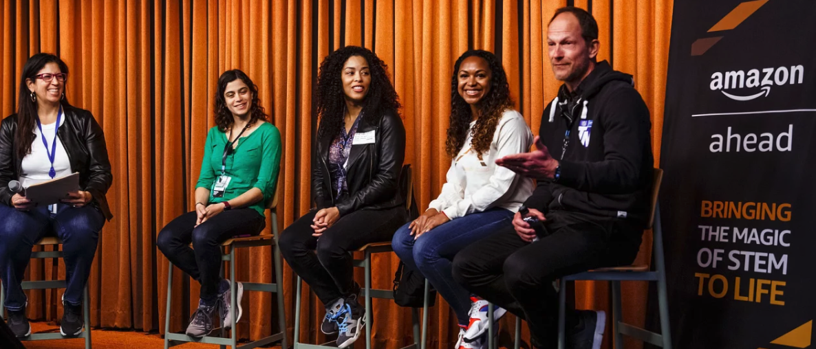 AHEAD (Amazon, Hardware, Embedded, Artificial Intelligence, Design) is a fully-funded STEM opportunity for students ages 11-18 to participate in a six-month enrichment program bringing the magic of STEM to life. The AHEAD program is designed to increase diverse representation in STEM.