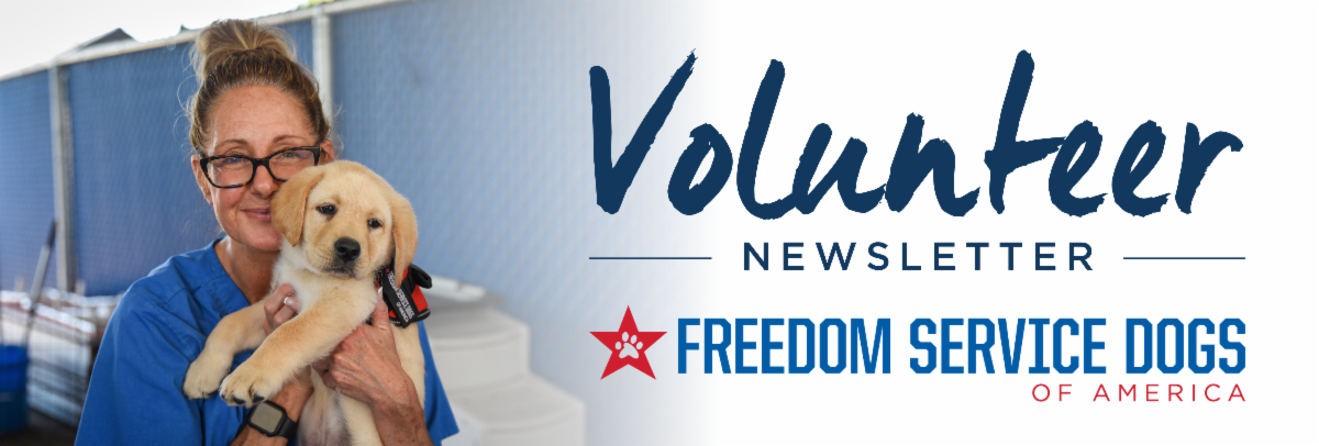 We’re always in need of more volunteers! We encourage you to share more about our mission and volunteer program with friends, family, neighbors, and coworkers! Please direct interested parties to our website or have them contact Volunteer Manager Hannah Perruccio at 303-922-6231 x201 or hperruccio@freedomservicedogs.org.