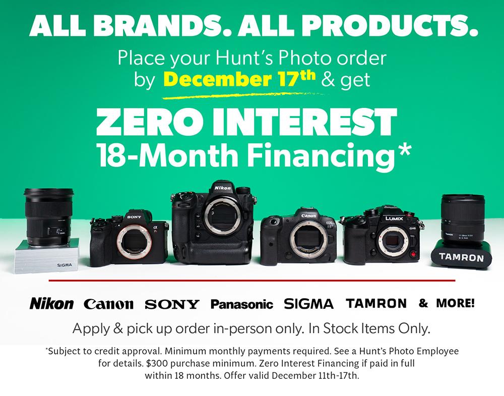 *Subject to credit approval. Minimum monthly payments required. See a Hunt’s Photo Employee for details. $300 purchase minimum. Zero Interest Financing if paid in full within 18 months. Offer valid through December 17th.