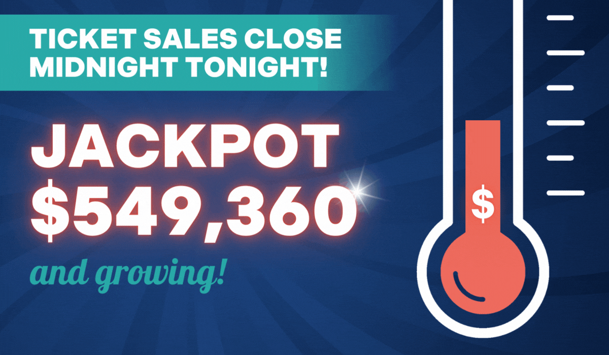 At a minimum, you could be cashing in $10,987 as one of our 13 winners! If you want to help us achieve our Jackpot goal AND increase your odds of winning a big payout, make sure to grab last-minute tickets before the FINAL deadline of midnight tonight!