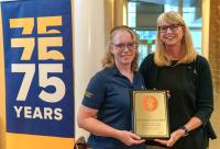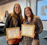 Two oncology residents won research awards at the 2023 Veterinary Cancer Society (VCS) annual conference, held recently in Reno. Dr. Julia Colosi is a third-year resident in the Medical Oncology Service. Her oral abstract presentation titled “Outcomes of Dogs Treated with Sequential Half Body Radiotherapy and a Short CHOP Chemotherapy” won the E. Gregory MacEwen Memorial Award for outstanding oral research presentation. Dr. Evangelia Makrygiannis is a second-year resident in the Medical Oncology Service. Her poster presentation titled “Toxicity and Preliminary Efficacy of Fixed Dose Rate Gemcitabine in Dogs with Neoplasia” won the Amiya K. Patnaik Memorial Award for outstanding poster research presentation.