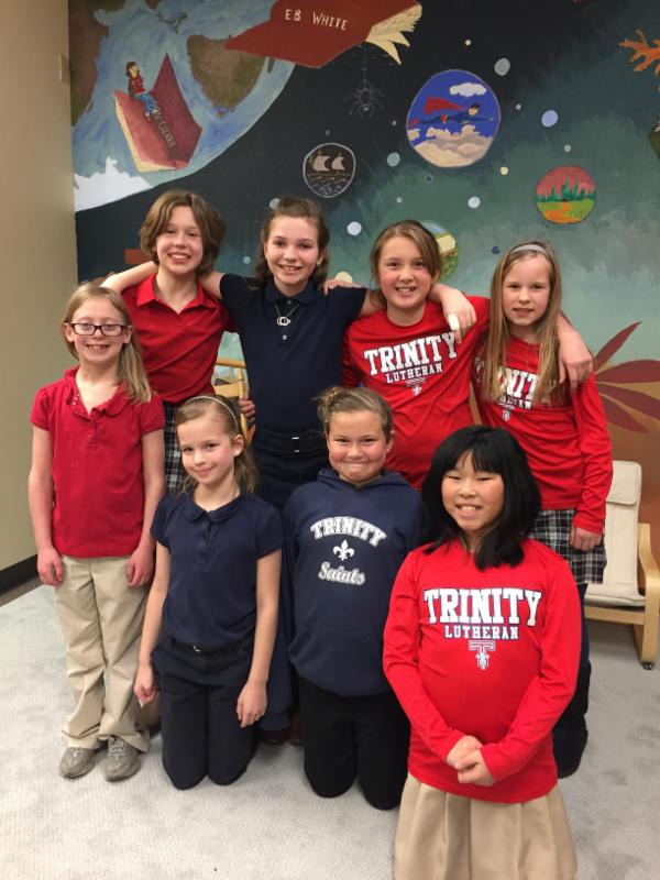 Congratulations Trinity Battle of the Books Team! Team members are Kate Mawdsley, Kaitlyn McMorrow, Lexi Valentine, Lacy Clothier, Elizabeth Rawnsley, Gracie Leebert,