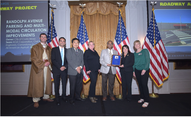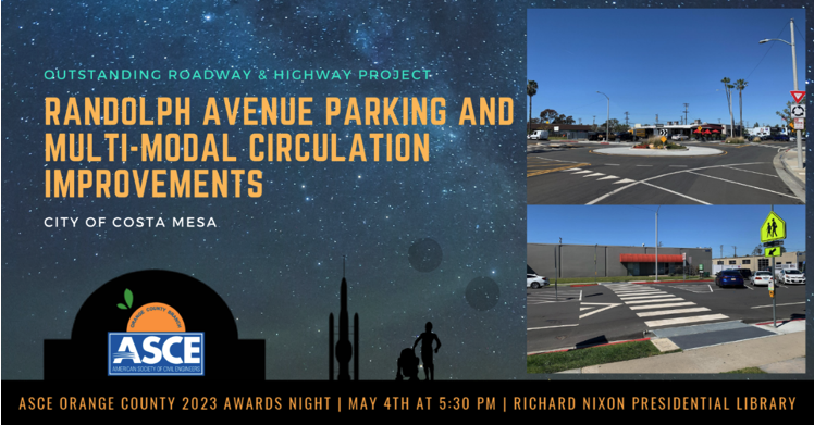 The American Society of Civil Engineers (ASCE), Orange County awarded the City of Costa Mesa with the 2022 Outstanding Roadway and Highway Project Award for the Randolph Avenue Parking and Multi-Modal Circulation Improvements Project.