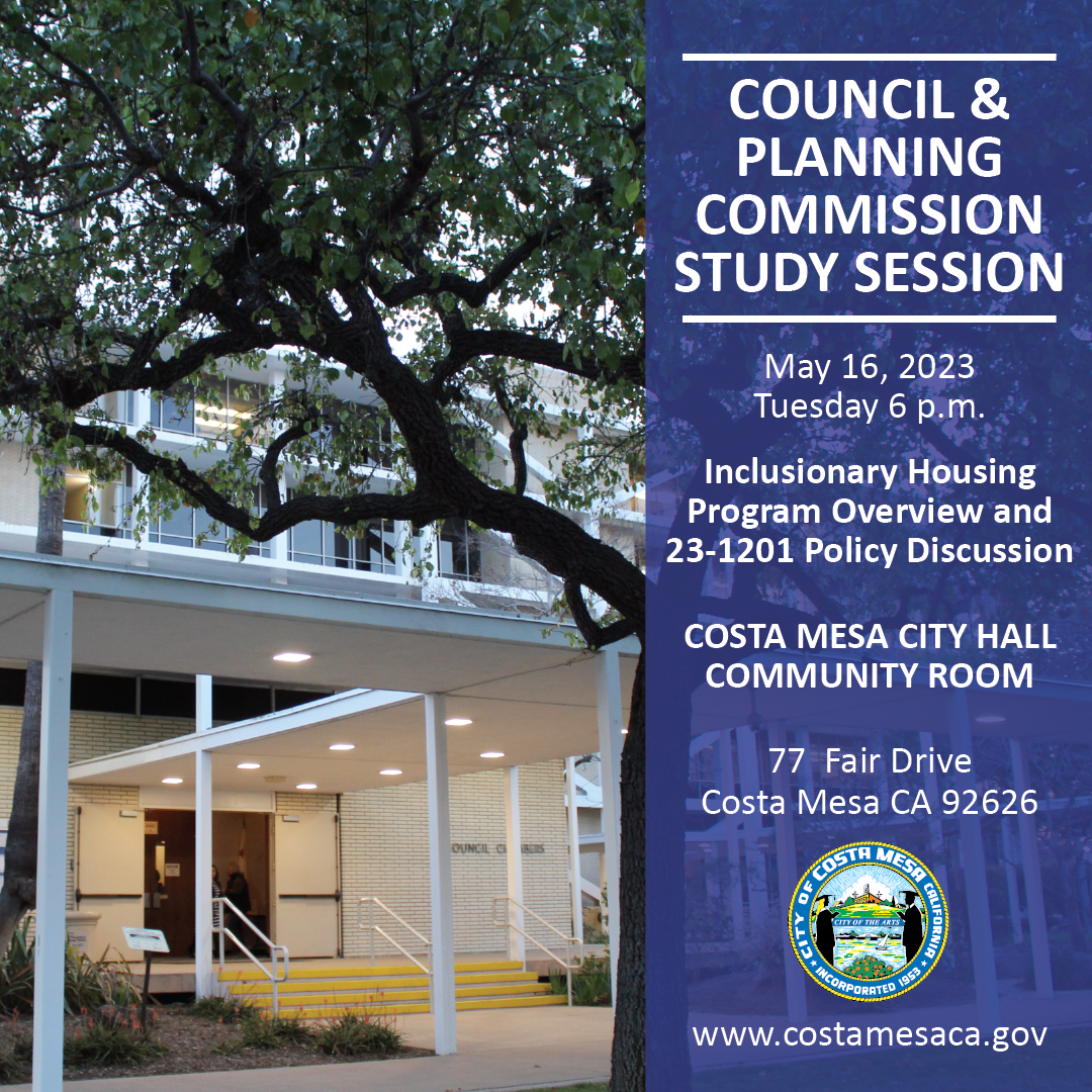 Join the Costa Mesa City Council and the Costa Mesa Planning Commission for a special joint study session to discuss the proposed Inclusionary Housing Program.