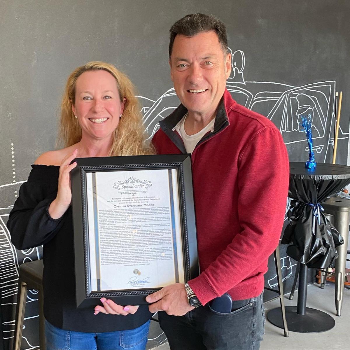 The Costa Mesa Police Department (CMPD) congratulates Officer Stephanie Moore on her well-deserved retirement after 25 years of service to this Department and the City of Costa Mesa!