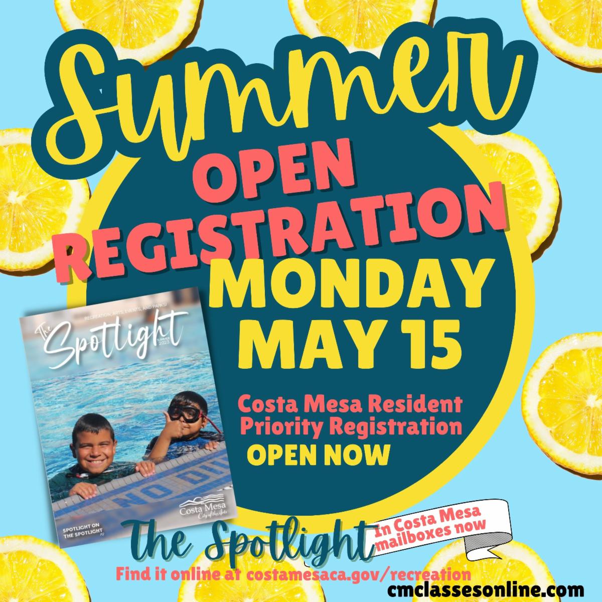 Costa Mesa Resident Registration for summer classes and programs is open now.