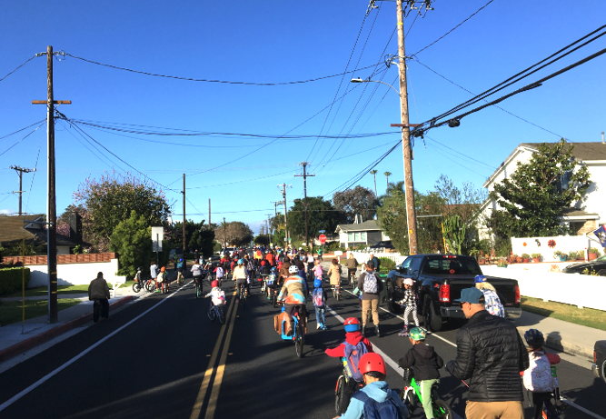 Hundreds of people participated in the two Costa Mesa Bike to School Day events.