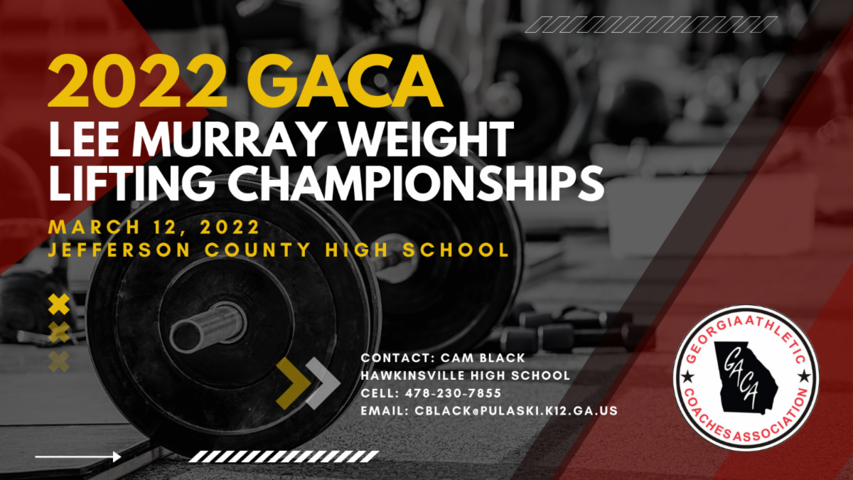 Weight Lifting is NOT a GHSA sport and the GACA – Lee Murray Weight Lifting Championships are NOT a GHSA sanctioned event and do not require normal GHSA eligibility criteria. The events are insured by the GACA and require that each participating athlete have a current physical on file with the participating school. All rules and competition decisions in the event are final with the GACA and the Event Coordinator, Cam Black, Hawkinsville High School