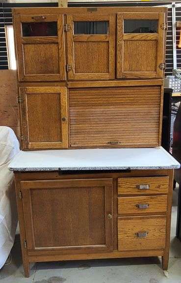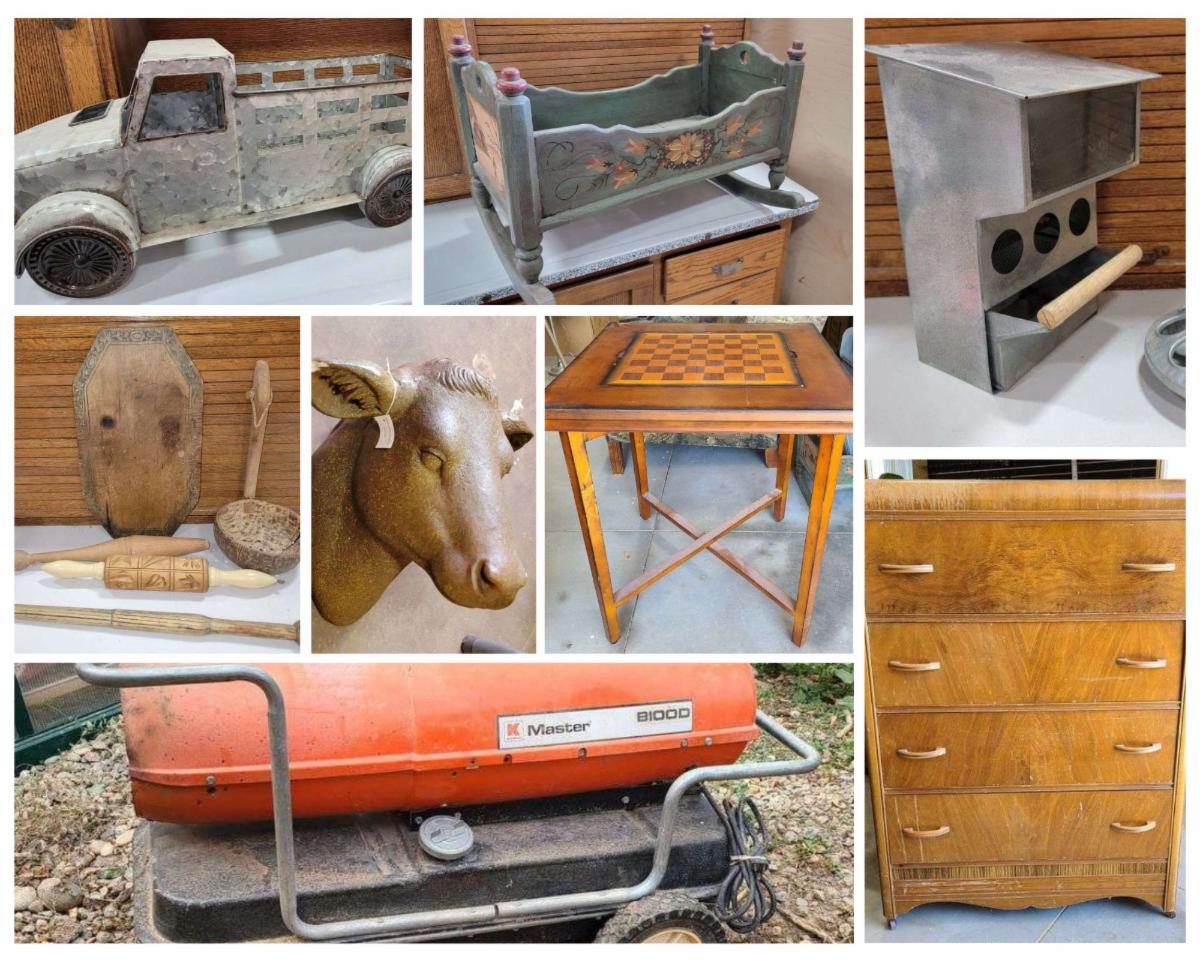 Decor & Household: Stanton Sofa, Lane Cedar Chest, Chest on Chest, Drop Front Secretary, Waterfall Bedroom Sets, Flexsteel Armchair, Hoosier Style Cabinet, End Tables, Coffee Tables, Refrigerator, Trunks, Game Table, Console Table, Rocking Chair, Dooney & Bourke Purses, LED TV's, Cast Iron Dutch Ovens, Foot Locker, Restoration Hardware Fireplace Tools, Pottery Barn Items, Antique Fern Table, Floor Lamps, Butter Churn, Candle Lanterns, Jewelry Boxes, Rae Dunn, Cast Iron School Bell, Doll Furniture, Roseville Pottery, Primitive & Rustic Items, Crocks, Enamelware Items, Peanuts Figurines, Canisters, Bicycles, Mid Century Children's Table & Chairs, Wedding Dress, Framed Art, Paul Mitchell Beautician Head, Mannequin Parts, Sconces, Pet Houses, Barstools, Baskets, etc.
