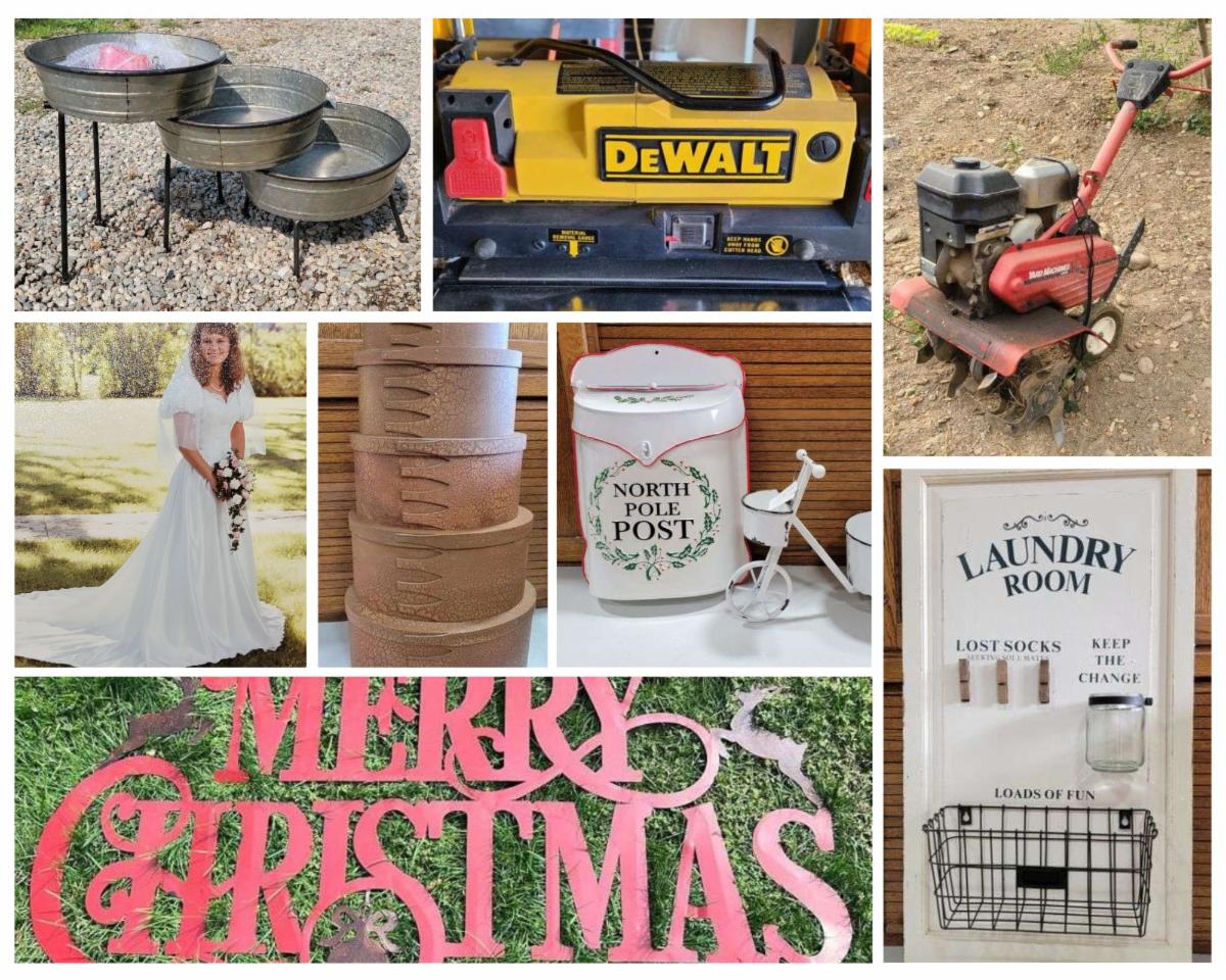 Tools - Table Saws, Drill Press, Router Table, Band Saw, Planer, Dust Collector, Generator, Shop Cabinets, Work Bench, Industrial Shelving, Compound Miter Saw, Stacking Tool Box, Vises, Engine Crane, Scroll Saw, Hand Tools, Power Tools, Pneumatic Tools, DeWalt Power Tools, Commercial Hardware Storage, Vises, Clamps, Hardware, Industrial Cart, Weed Sprayer Wagon, Rotatiller, Kohler Irrigation Pump, Commercial Grade Sprinkler, JD Garden Cart, Kerosene Heater, Barbed Wire, Roller Saw Horse stands, Galvanized Water Troughs, Utility Wagon, Heat Lamps, Saws, Electric Fencers, New Plumbing Items, Lighting, Wagner Electric Pain Sprayer, Shallow Well Jet Pump, etc.