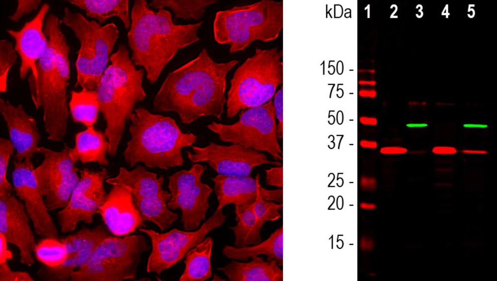 Biosensis offers two types of GAPDH antibodies: a mouse monoclonal antibody and a rabbit polyclonal antibody. These antibodies were specifically developed against highly purified pig GAPDH. They have become a widely used tool in research because of their reliable ability to detect GAPDH across multiple mammalian species, including humans, rats, and mice, and multiple applications including western blotting, immunocytochemistry, and immunohistochemistry, including paraffin-embedded tissues, They recognize an epitope within the peptide sequence corresponding to amino acids 254-273 of the human GAPDH protein, ensuring precise detection and quantification in various experiments.
