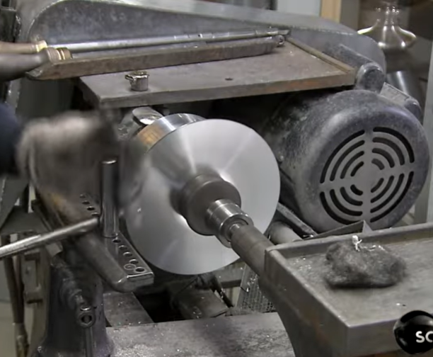 A Mr. James Vickers discovered, in 1769, that adding antimony to the pewter mix could turn the alloy into a sheet of pewter. Therefore, instead of pouring hot molten liquid pewter into bronze molds you could put a sheet of pewter either on a former and shape it by hand and or spinning it. Then the formed pieces could be soldered together making a pewter vessel that was lighter and less expensive. This is still a very popular skilled method of making pewter today.