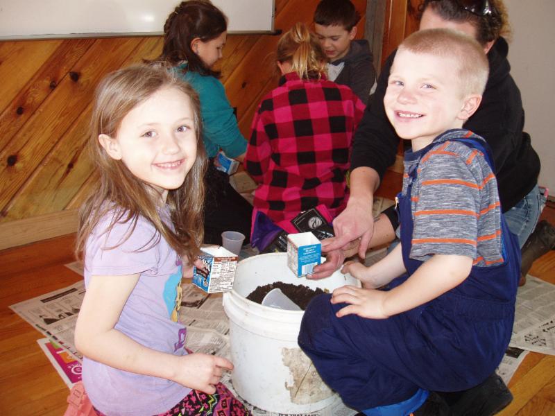 Pictured below: Natalie Fore and Collin Rappley plant marigold seeds while learning about plants at CAVOC.