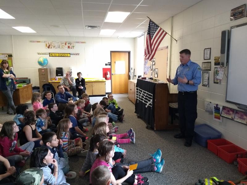 Pictured below: Crescent parent Adam Johnson (Firefighter/Paramedic) talks about his career with second graders.