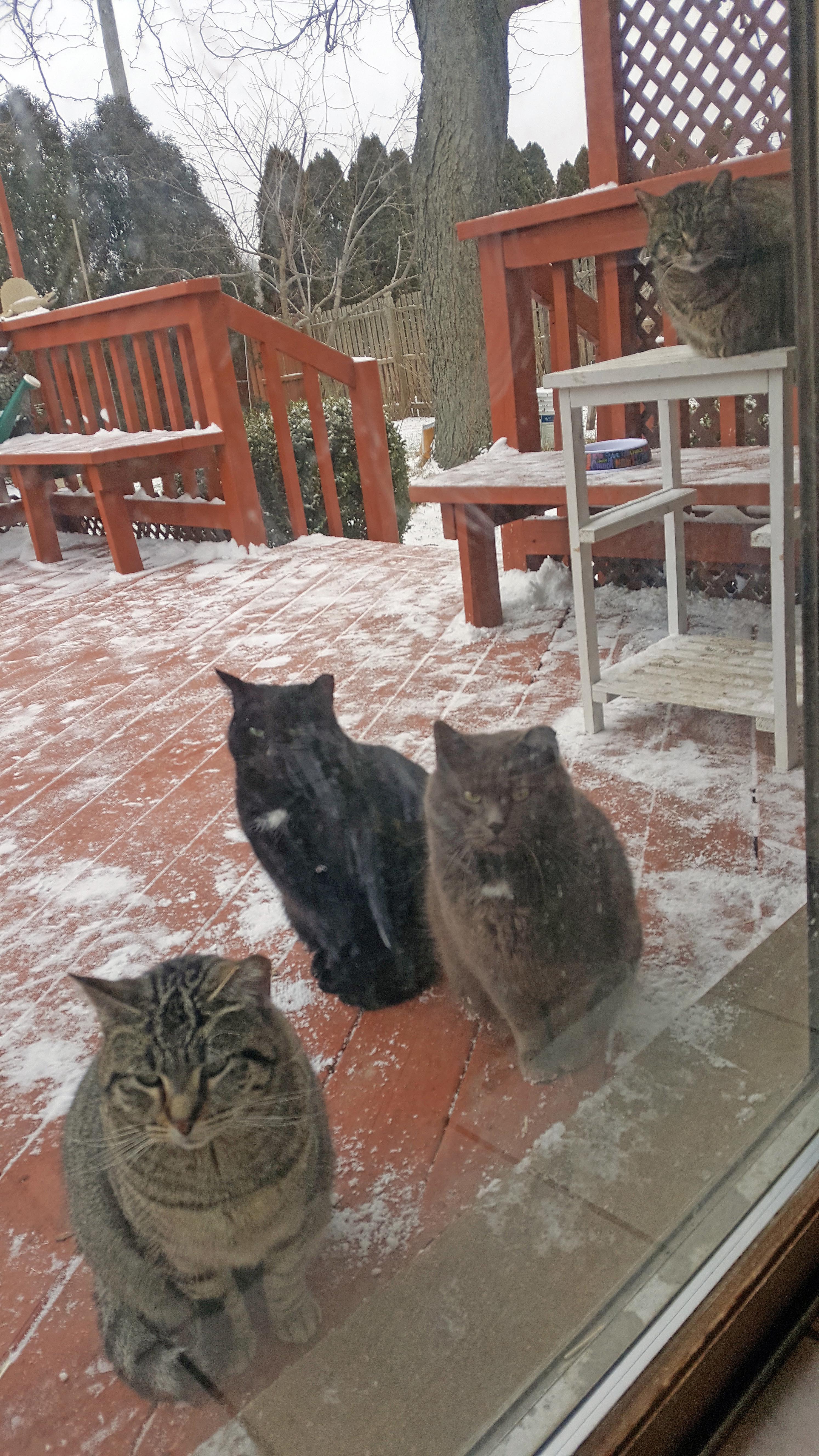 Thank you Marty - this picture of "Star Cat", "Bob", "Prince" and "Stripes" truly says "winter" and "outdoor cat(s)"!