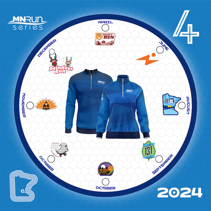 Sign up for 4 or more MN RUN Series races in 2024 and pick this up at your next race! Once you are registered your will receive and email on how to order your gear.