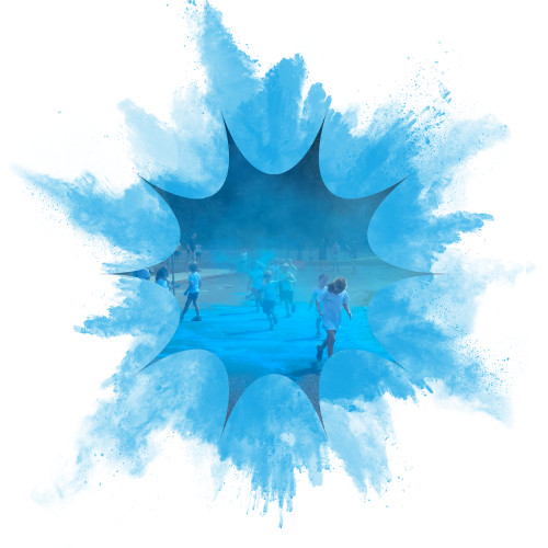 Well… it’s more of a color party! It is a ½ mile loop where you run, walk, hop, skip, or jump from color station to color station. At each station volunteers will be throwing colored powder – plan to get messy and colorful from head to toe! Registered runners can loop as many times as they want and have excess color powder blown off at the end. There will be music, the Kona Ice Truck, & lots of color-throwing! Older siblings are welcome and eligible to volunteer as color-throwers with parent supervision.
