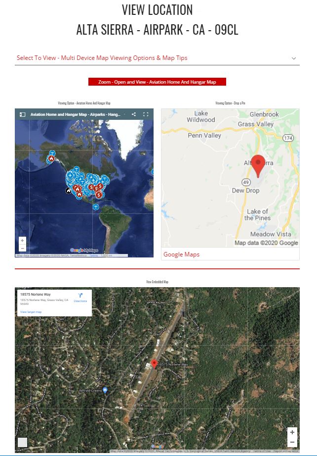 Map Tip - IF your blue or red airpark markers are not populating on the map here is the solution. When viewing your map - Go to "your places" and then "maps" and select the Aviation Home and Hangar Map.