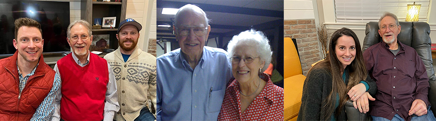 Pictured below, L-R: My sons James and Josh with my husband, Jim, in the middle; My father Marvin and mother Marie; My daughter Krista and my husband Jim.
