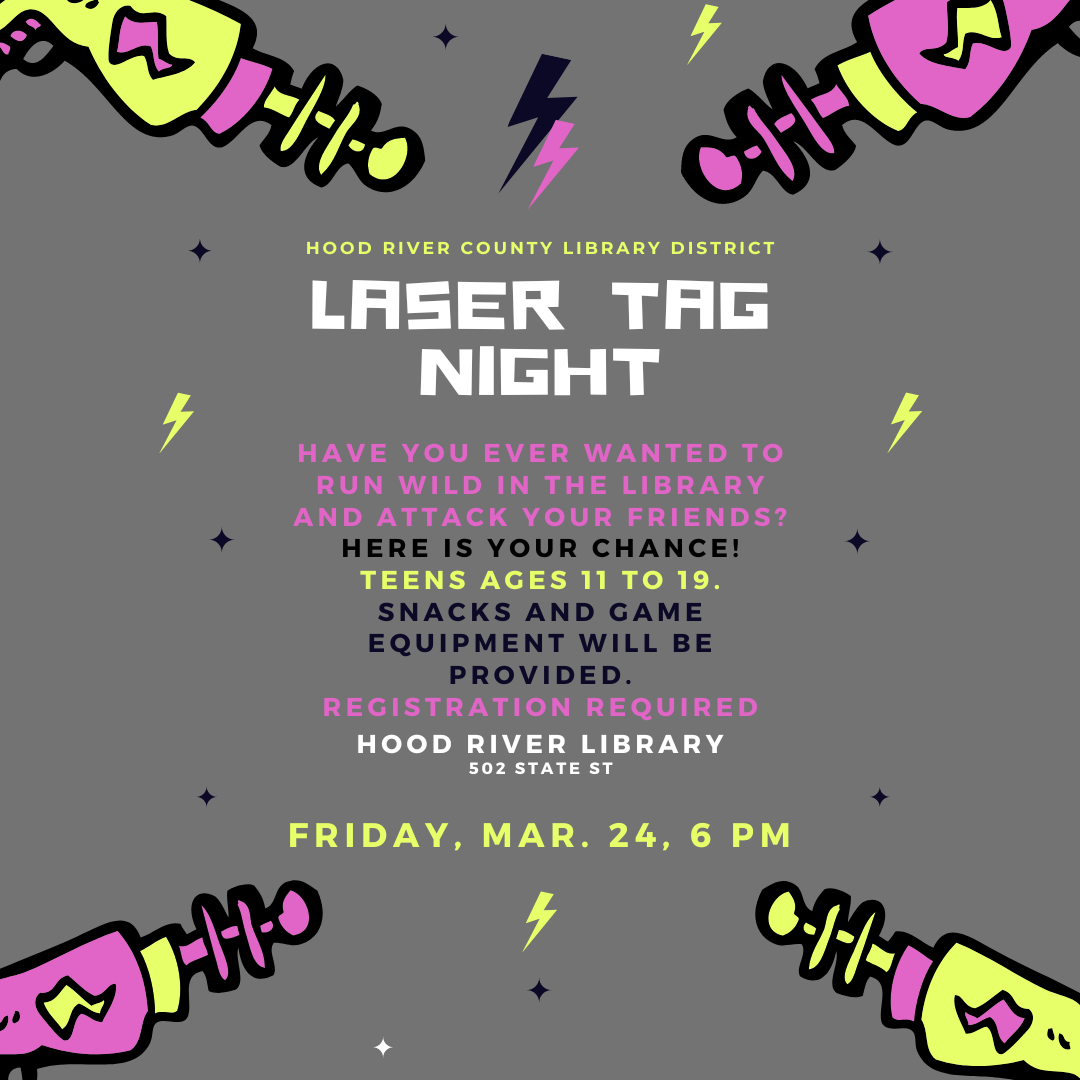 | Laser tag, a closed library, and friends to chase. What more is needed? Snacks and a registration form filled out by a parent or guardian. |