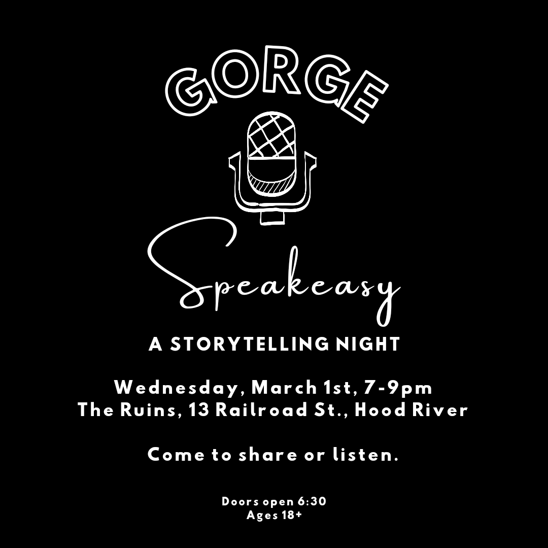 Join Gorge Speakeasy for a monthly storytelling evening in Hood River that strengthens the community.