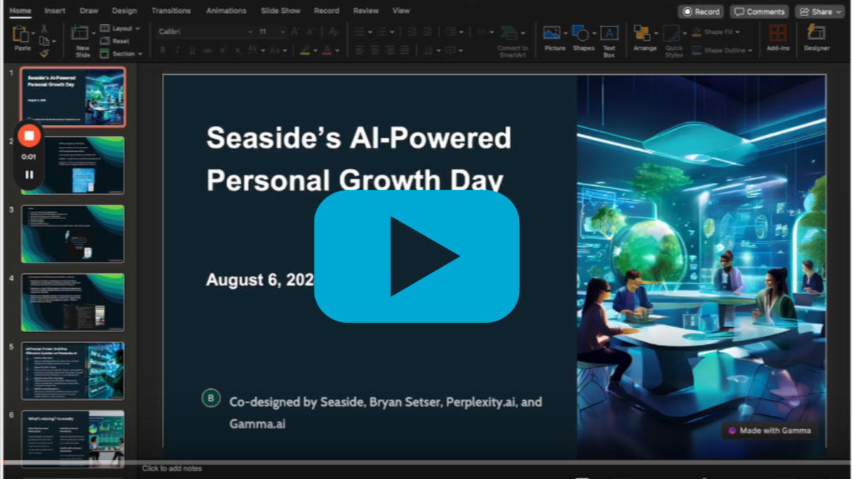 In preparation for the 2024-2025 school year, Dr. Miller asked Setser Group to prepare a Personal Growth Day powered by AI experiences that would help Seaside's vision, mission, and strategic goals come to life. Over the summer, both Seaside and Setser Group prepared an AI experience with humans at the center of the work.