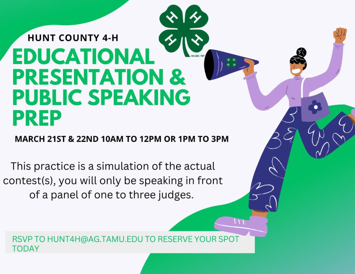 Location: Hunt County Extension Office (2217 Washington St., Greenville, TX)