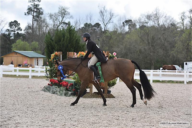 G.K Cassio, owned by Erin Mulloy and ridden by Megan Young of Jacksonville, Florida, was awarded a third place ribbon after earning a first round score of 88 and Handy score of 89 for a combined score of 177.