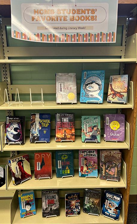 Ms. Moye’s 5th period Student Literacy Leaders, led by Leticia Ribeiro, created a “HCMS Students' Favorite Books Destiny Collection and display in the library using the books that were nominated for HCMS Favorite Book of the Year during Literacy Week.