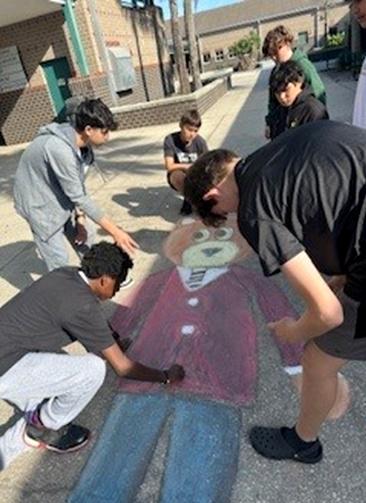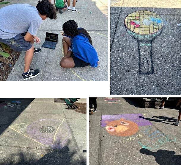 Ms. Bevard’s geometry class utilized their understanding of tangents and chords to create circles in the courtyard. They then decorated their circle however they wanted to.