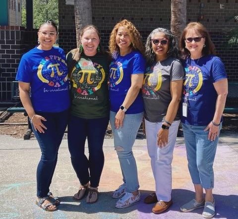 ** Pictured above: HCMS Math Teachers Ms. Lebron, Ms. Pratt, Ms. Davis, Ms. Murray, and Ms. Daniel celebrate Pi Day! **