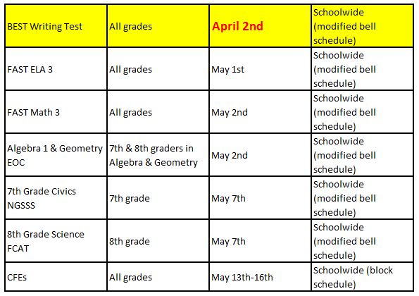 Everyone came back from spring break with a renewed energy to start the fourth and last nine-weeks to finish the year strong. The third nine-week's report cards will be accessible on Skyward on Tuesday, April 2nd. Please continue to monitor your student's academic progress. Contact the teachers with any questions or concerns.