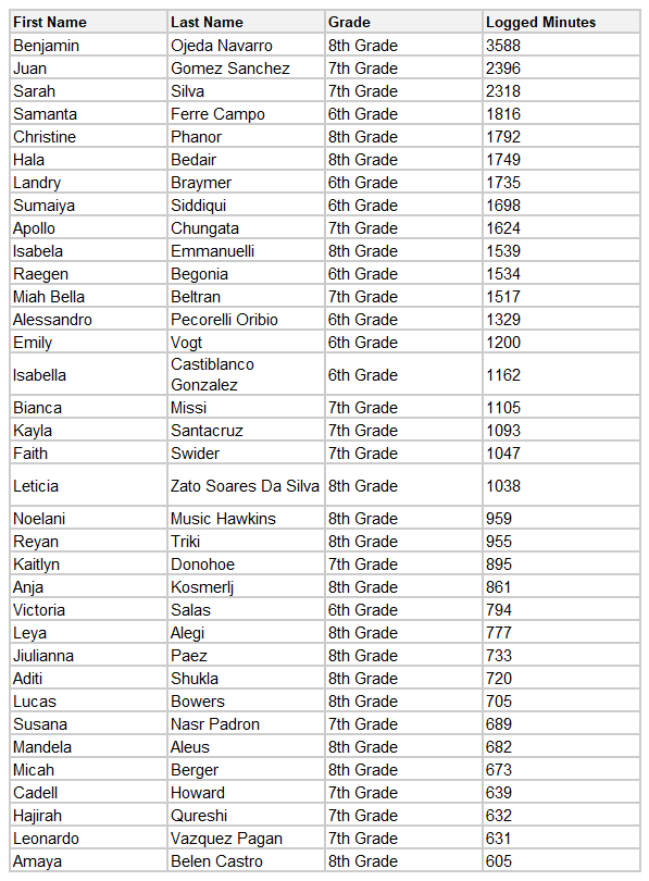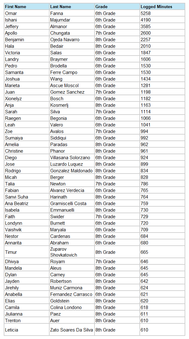 Monthly, we honor our students who took part in the Beanstack reading challenge by giving them a HERO point. Those who went above and beyond, reading over 600 minutes in the month!, are given 2 HERO points AND a prize from one of our Partners in Education. Thank you to Dezerland Park for the prizes given to our January and February top readers!