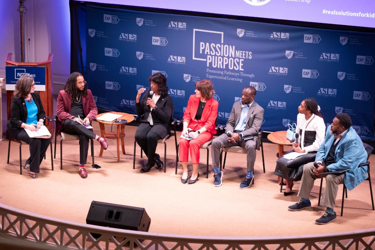 Shown above: Kwesi Rollins (far right) and the panel at the Passion Meets Purpose: Promising Pathways Through Experiential Learning event (photo credit: AFT) | |