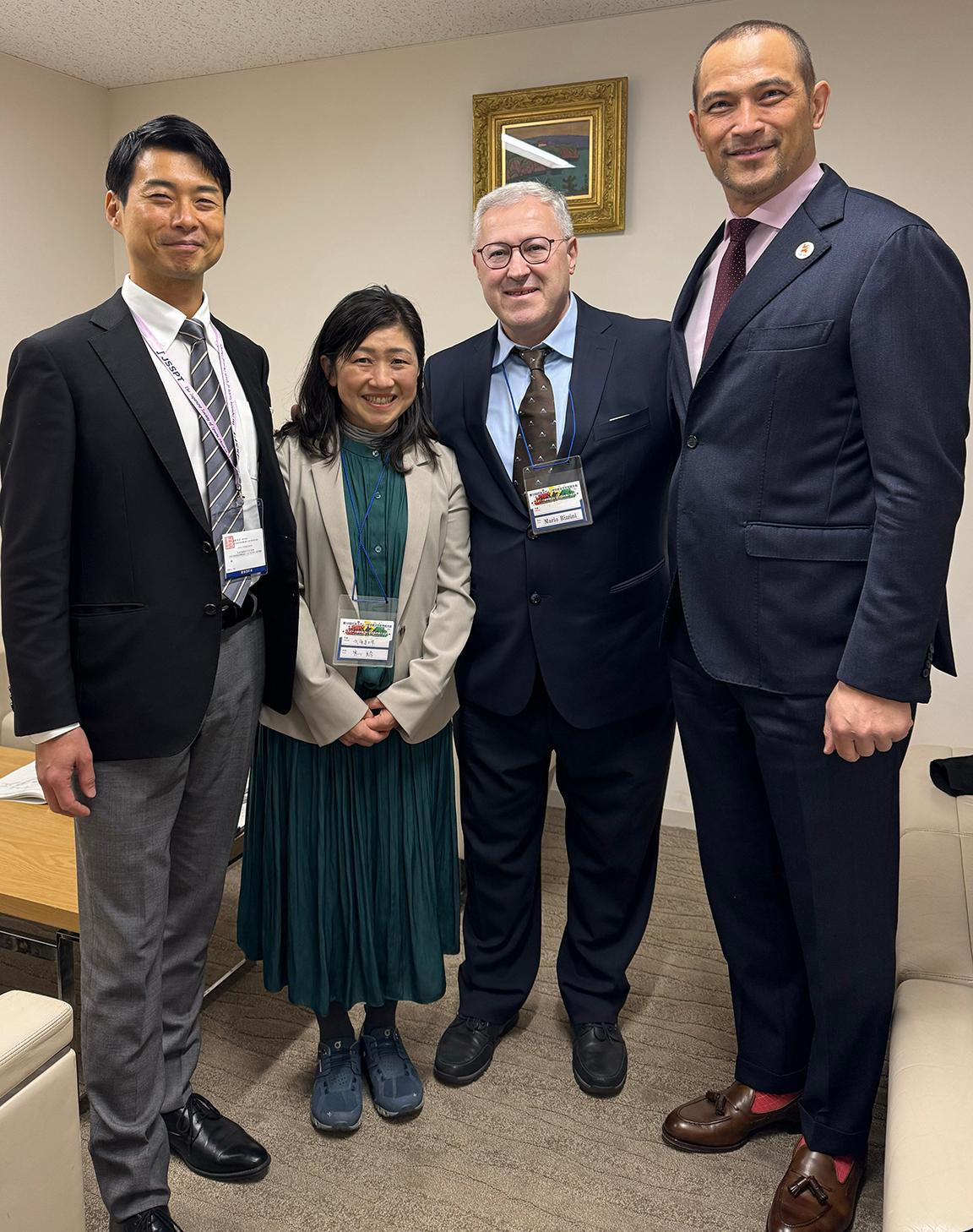 Junia Aizawa, JSSPT president, Mina Samukawa, Mario Bizzini, and Koji Murofushi, a former Olympic athlete