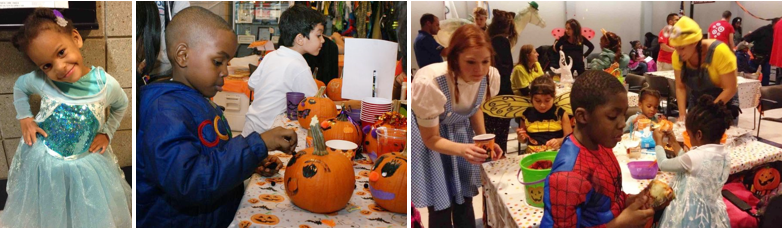 Children staying in domestic violence shelters don't have the opportunity to celebrate Halloween like other children. Our Halloween party gives these children a safe haven to celebrate Halloween in an environment that's all about fun. They receive a costume when they arrive and enjoy an afternoon of pumpkin painting, cookie decorating, games, yummy treats, and trick-or-treating at the police station and fire house.