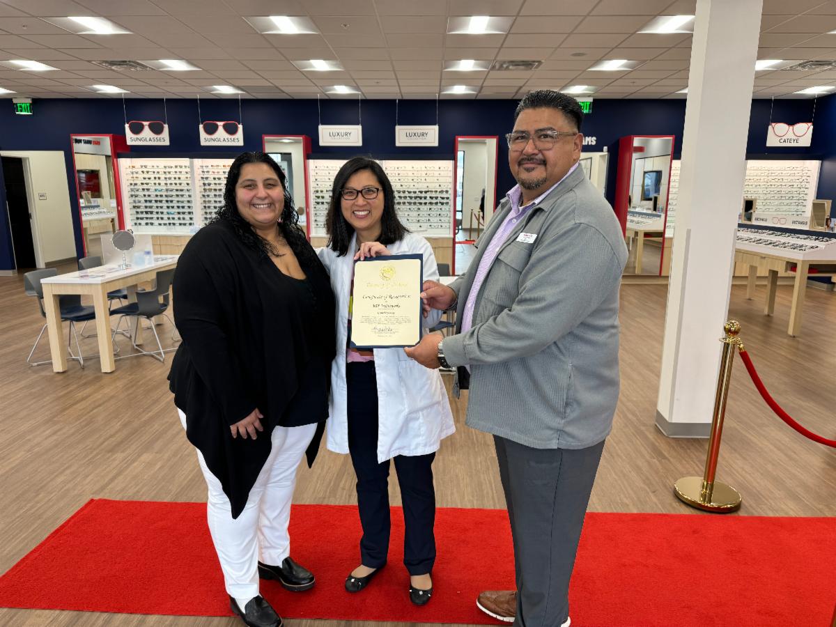 On the refreshing morning of Wednesday, February 21, 2024, Chamber and board members, accompanied by representatives from Senator Josh Newman, Assemblywoman Sharon Quirk-Silva, and Orange County Supervisor Doug Chaffee's office, joyously gathered with the Visionworks store staff and managers from across southern California to partake in the celebratory ribbon-cutting event of the new Fullerton store.