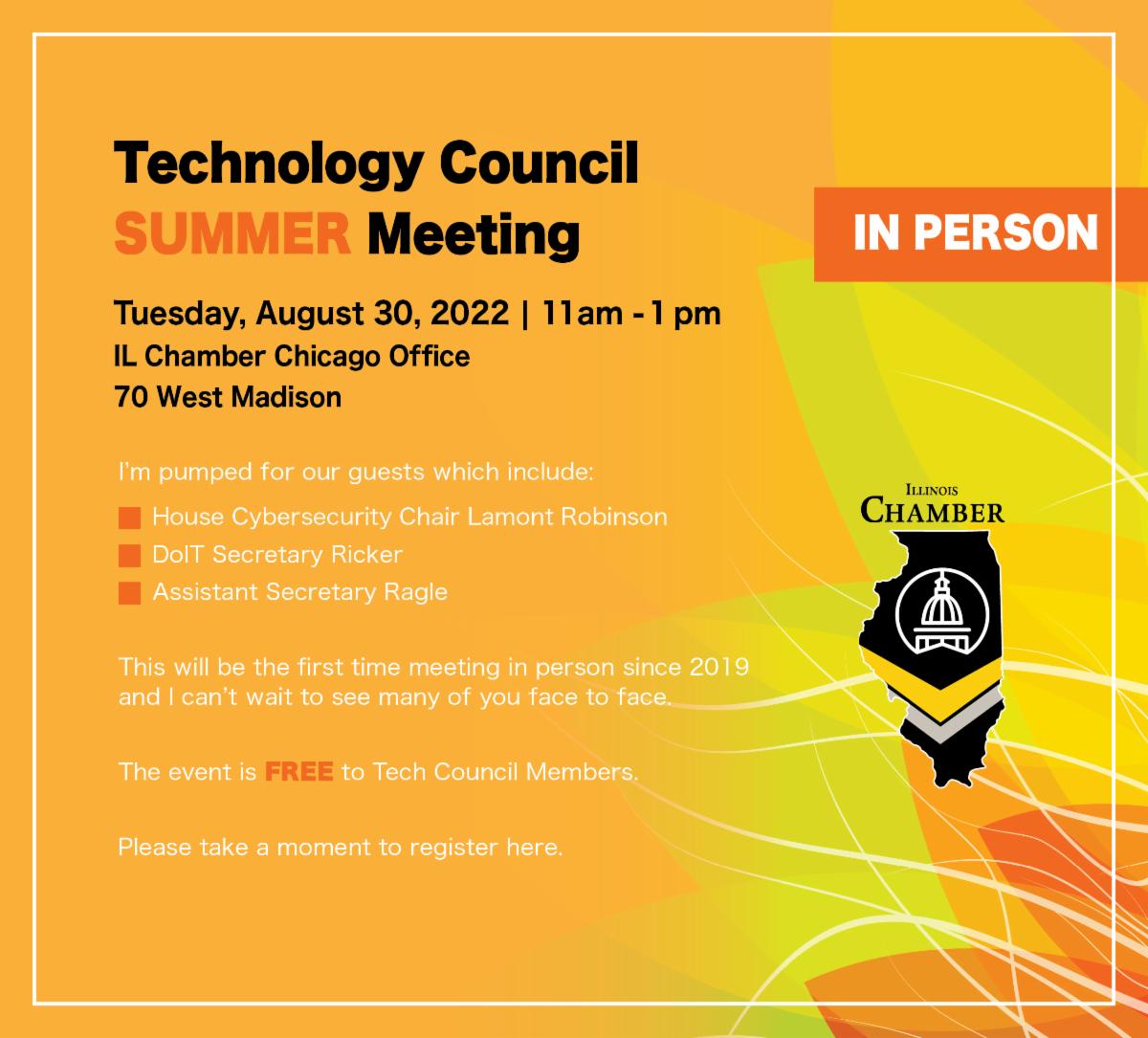 The Chamber’s biggest event of the year is our annual luncheon. This year’s event will be held at the Palmer House Hilton in Chicago on October 6th from 10:30 am to 1:30 pm. We have a fantastic lineup.