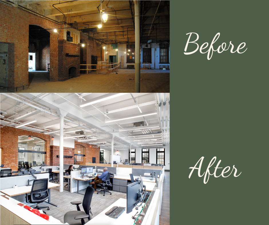 The project included a full exterior restoration, a vestibule addition, and a 23,000-sf interior buildout. The starting conditions was a neglected building with severe water damage, collapsed floors, crumbling walls, and broken windows.