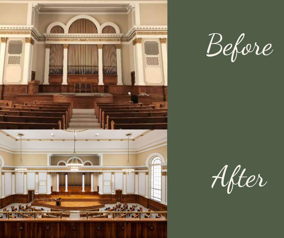 While preserving historical elements, the project seamlessly integrated contemporary building systems and features. This included retrofitting existing pews to incorporate modern technology such as tablet arm cradles and concealed wiring. State-of-the-art audiovisual equipment, energy-efficient lighting fixtures, and a modern HVAC system, all were designed to enhance the functionality and sustainability of the space.