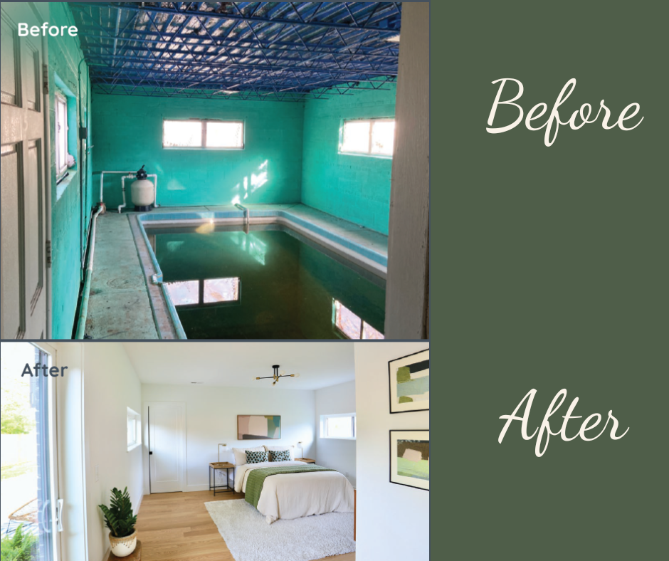 The home was occupied by the Wilbekins until Cleota died in 2017 and unfortunately, after sitting vacant for several years the house suffered from significant disrepair and needed a large work scope, especially in the pool room which needed structural repair and had a failing roof structure.