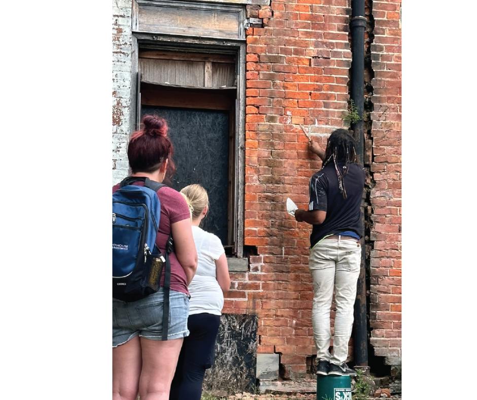 Students work side-by-side with skilled craftspeople who have dedicated their careers to mastering their trade. Through hands-on application in real properties, students gain practical experience that can translate into meaningful careers in the field of historic restoration. Currently, the students have a living lab on an 1880s Victorian brick building on Madison Avenue in Covington. Classes in box gutters, historic masonry, carpentry, plaster, historic painting, stained glass, window restoration, and wood floors are all part of the curriculum.