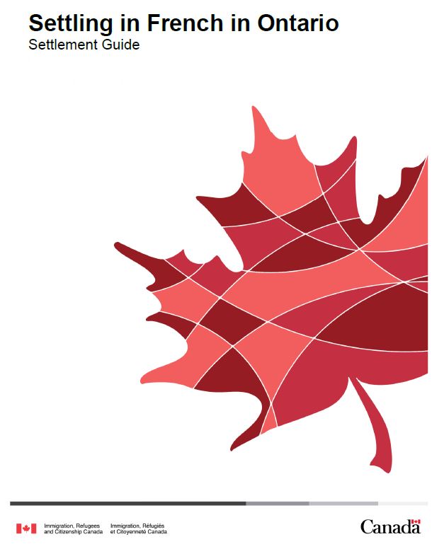 The "Settling in French in Ontario – Settlement Guide, " includes information about the IRCC-funded Francophone SPOs across the Ontario region as well as information about the French school boards and provincial ministry services.