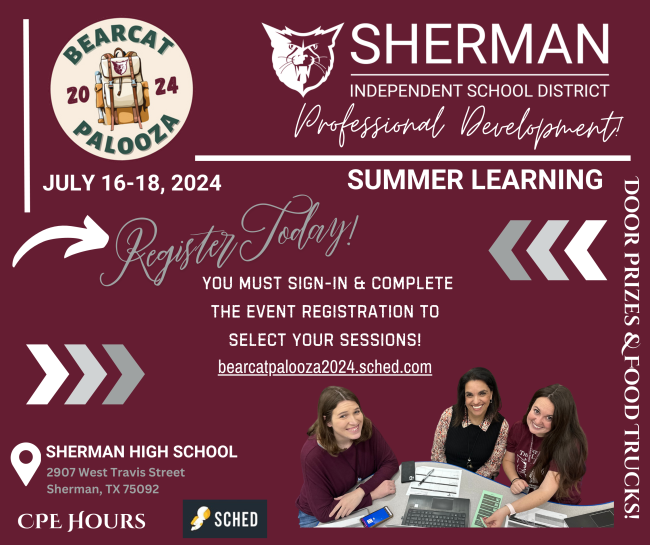 | 5/15 - SHS Orchestra Concert @ SHS Auditorium (7 p.m.) 5/16 - Wakefield Art Expo (5-7 p.m.) 5/16 - SHS Athletic Banquet @ SHS Cafeteria (Door open at 5 p.m.; Ceremony at 7 p.m.) 5/17 - In-Person Registration Help Event@ Neblett (3:45 - 6 p.m.) 5/17 - SHS Choir Banquet @ SHS Cafeteria (6 p.m.) 5/17 - SMS Band Spring Concert @ SMS Auditorium (6:30 p.m.) 5/18 - SHS Bass Fishing @ State Tournament 5/18 - Neblett Art & Music @ Audra’s All-Stars Baseball, Old Settlers Park (6 p.m.) 5/20 - Fine Arts Signing Day @ SHS Auditorium (7:30 - 8:30 a.m.) 5/20 - Senior Walk 5/20 - In-Person Registration Help Event @ Wakefield (3:45-6 p.m.) 5/21 - SHS Top Ten Luncheon 5/21 - SISD Retirement Dinner @ Hilton Garden Inn 5/22 - Early Release Day 5/23 - Early Release & Last Day of School 5/24 - Graduation @ Bearcat Stadium (Gates open at 5 p.m.; Ceremony at 7 p.m.) |