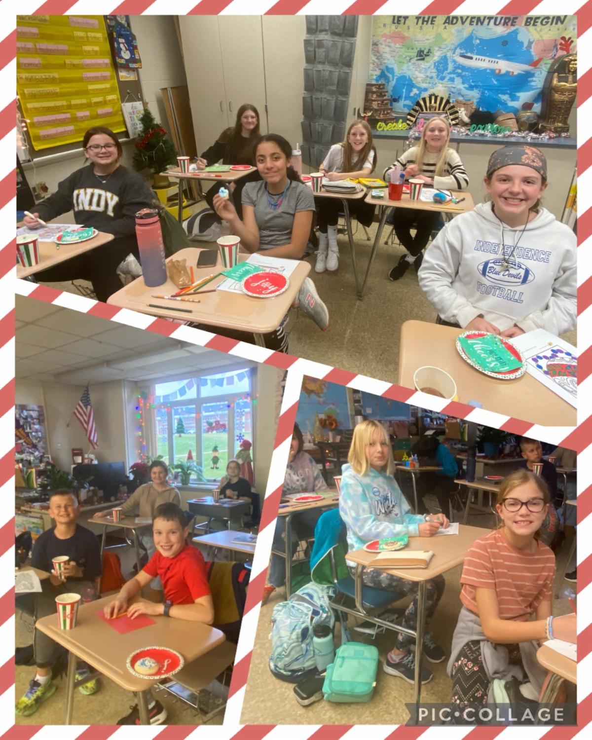 Builders Club held their holiday party and enjoyed some treats while making cards and pictures to send to the City Mission for residents this holiday season.