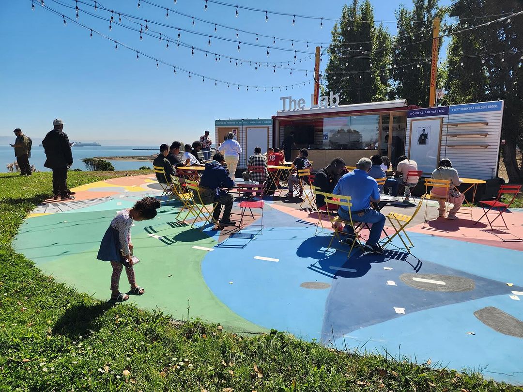 The Community Innovation Lab at India Basin Shoreline Park (Hunters Point Boulevard and Hawes Street) is open! Its current hours are noon to 5 p.m., Tuesday through Saturday, offering services such as free rentals of sports equipment and recreational activities. Additionally, it provides space for community organizations to host their programming, workshops, networking events, and more. It's also a great place to just drop-in, relax and take in the beautiful view of the bay!