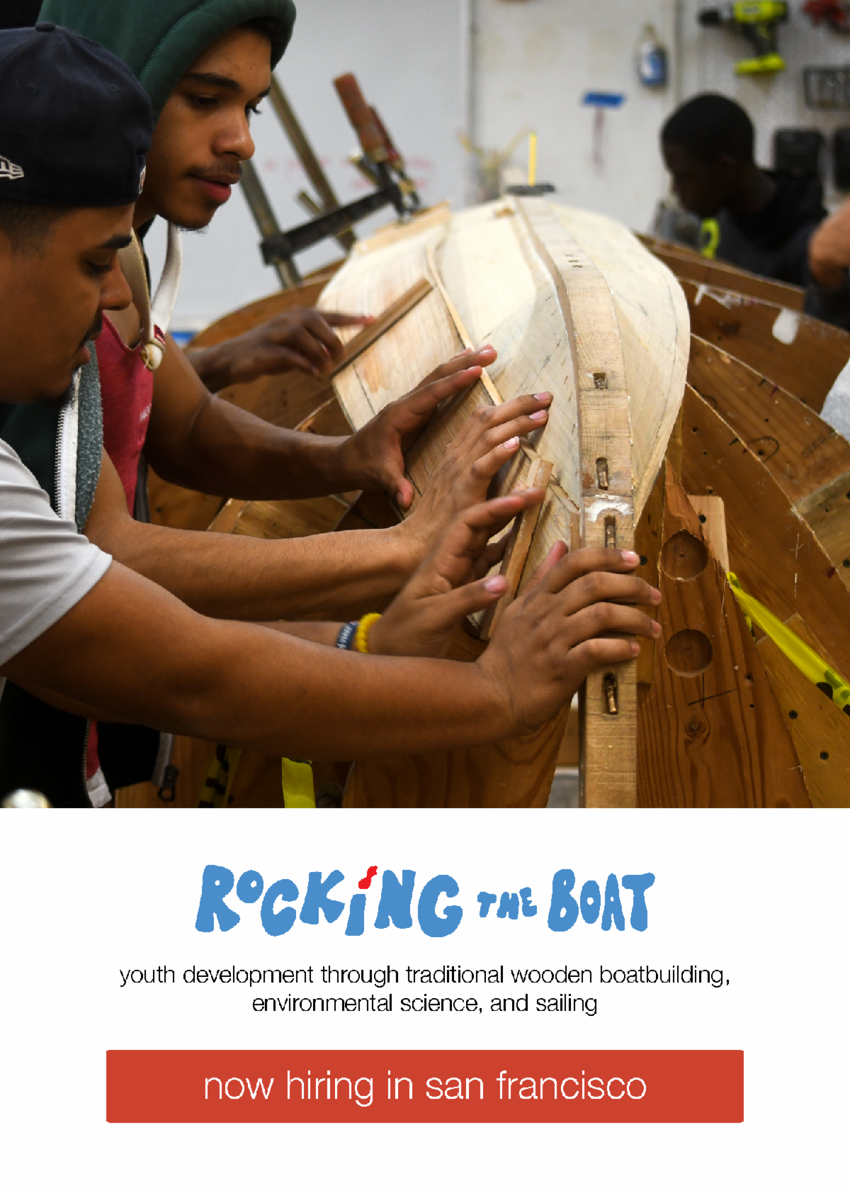 When the first portion of the India Basin Waterfront Park Project opens to the public at 900 Innes Ave. later this year, the nonprofit Rocking the Boat will take the helm of nautical learning, teaching young people and community members to build boats, row, sail, and restore the waterfront. In addition to providing programming for the community, Rocking the Boat is committed to hiring local community members to fill key staff roles and serve as role models. For more information and to apply, click the link below.