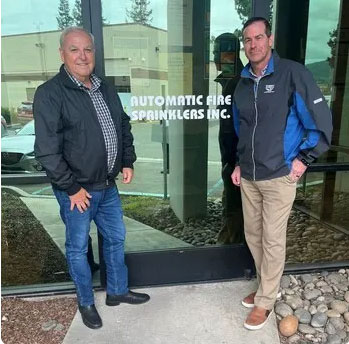 Rod DiBona, COO of Pye-Barker's sprinkler division, with Gary Peterson, President and CEO at Automatic Fire Sprinklers.